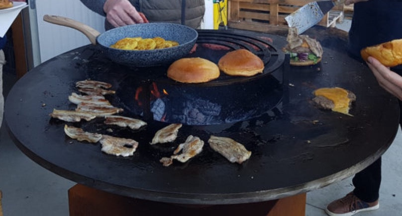 Vedfyrt grill og bålpanne som kombinerer grilling og steking året rundt. Den store stekeflaten i stål gir jevn varme og god kontroll – enten du griller direkte over flammene eller steker på varm plate. Kan fyres med ved eller kull og er klar til bruk etter kort tid.